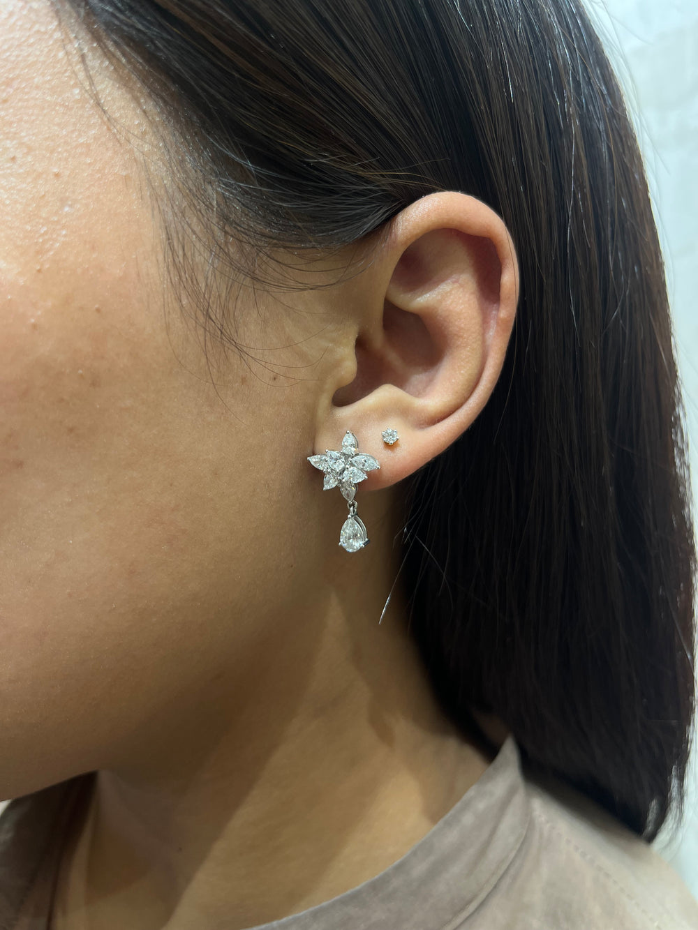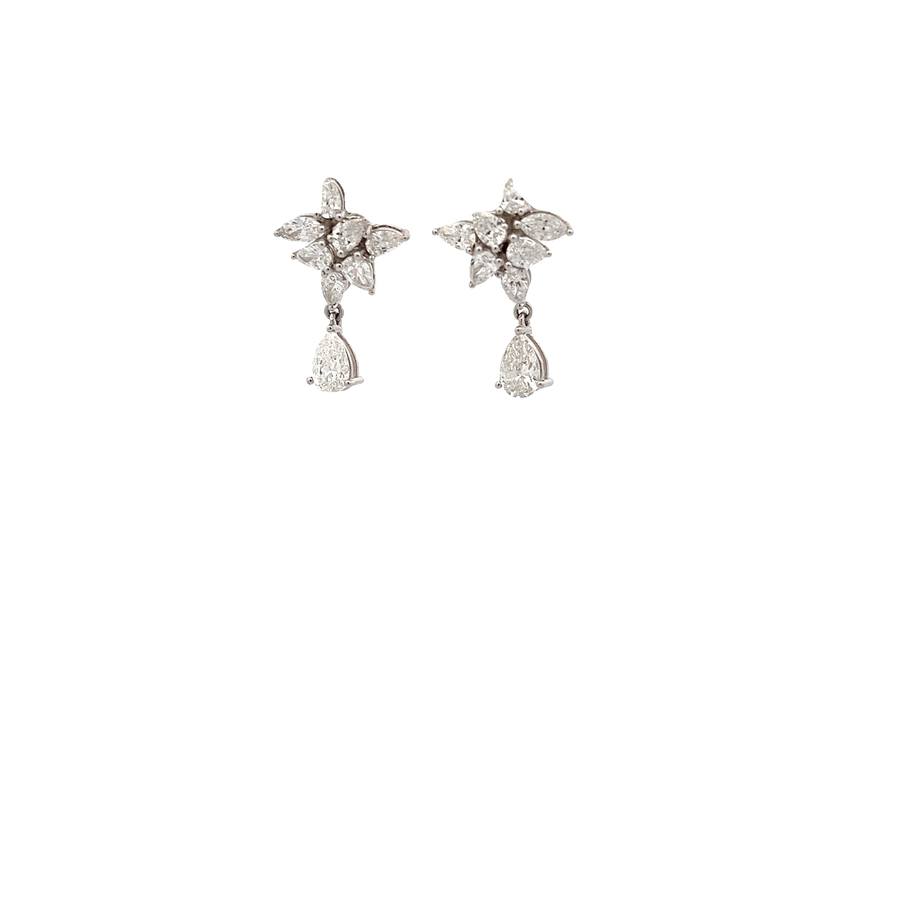These stunning diamond drop earrings are the epitome of elegance. Crafted with precision, they feature a beautiful floral design adorned with sparkling diamonds that catch the light beautifully. Perfect for any special occasion, these earrings will elevate your look and add a touch of sophistication.
